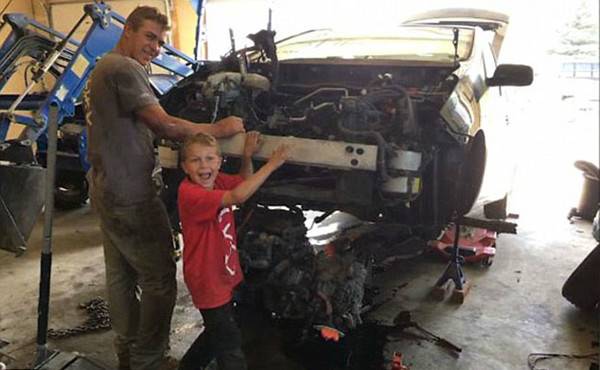 千鈞一發(fā)之時,年僅8歲小派克利用跳躍將全身力量壓在千斤頂上,花了15分鐘抬起汽車讓父親順利爬出。而在平時,這輛車需要史蒂芬和大兒子梅森(Mason Parker)兩人合作才能用千斤頂抬起。